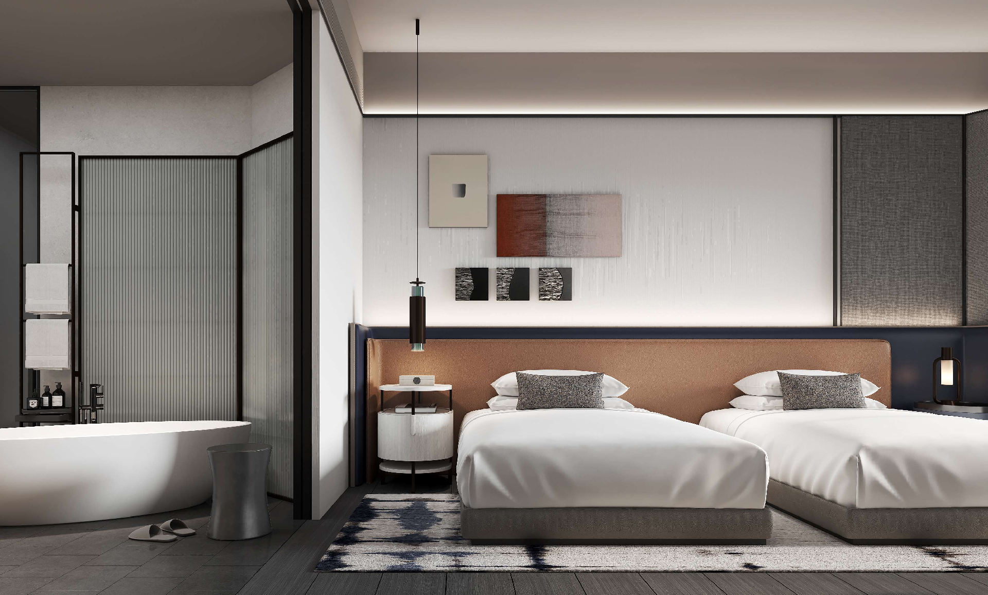 2. 色彩選擇:選擇柔和、舒適的色彩,如淺藍色、米色或淡黃色,以營造放松和舒適的氛圍。避免使用過于刺眼或過于暗淡的顏色。